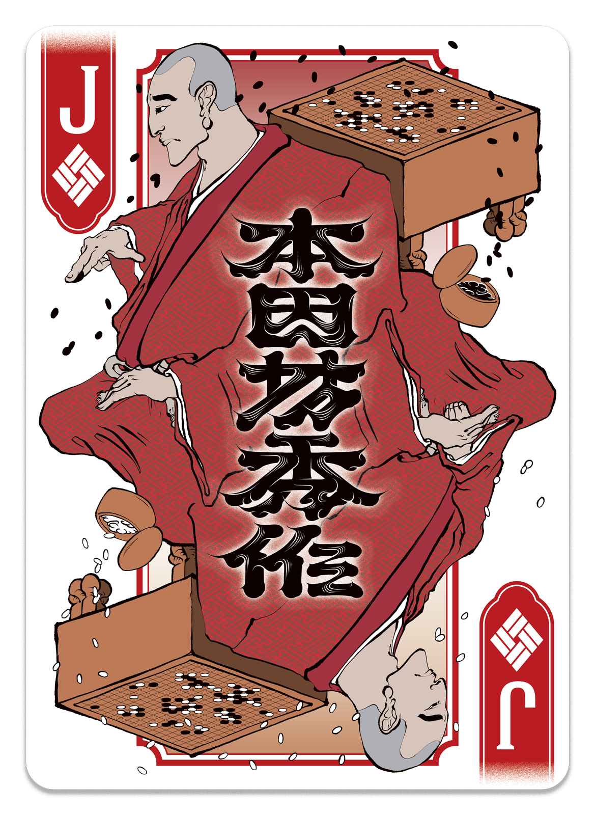 Known as the Go master who was once possessed by Fujiwara no Sai — the ghost at the heart of Shueisha's manga series "Hikaru no Go" — before the spirit moved on to the protagonist Hikaru. In historical fact, Shūsaku stands as one of the greatest Go players of the Edo period. The illustration captures the charged stillness of the board: one player poised to make their next move, the other waiting in quiet anticipation.