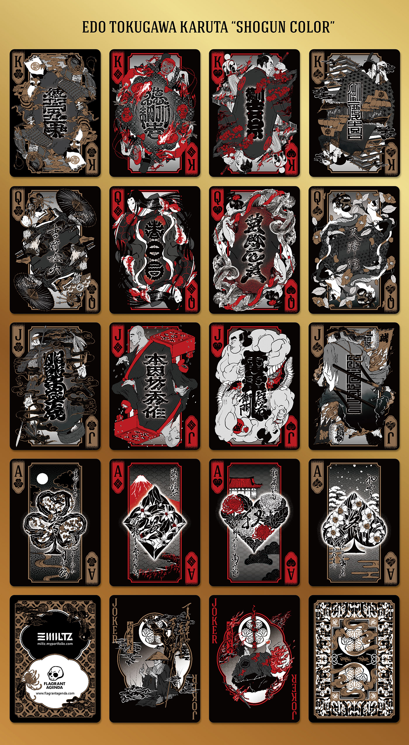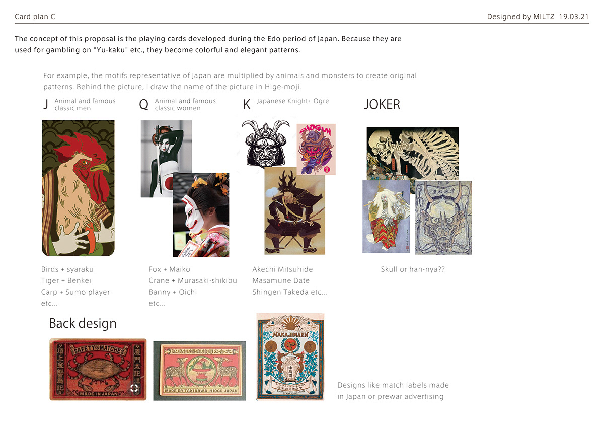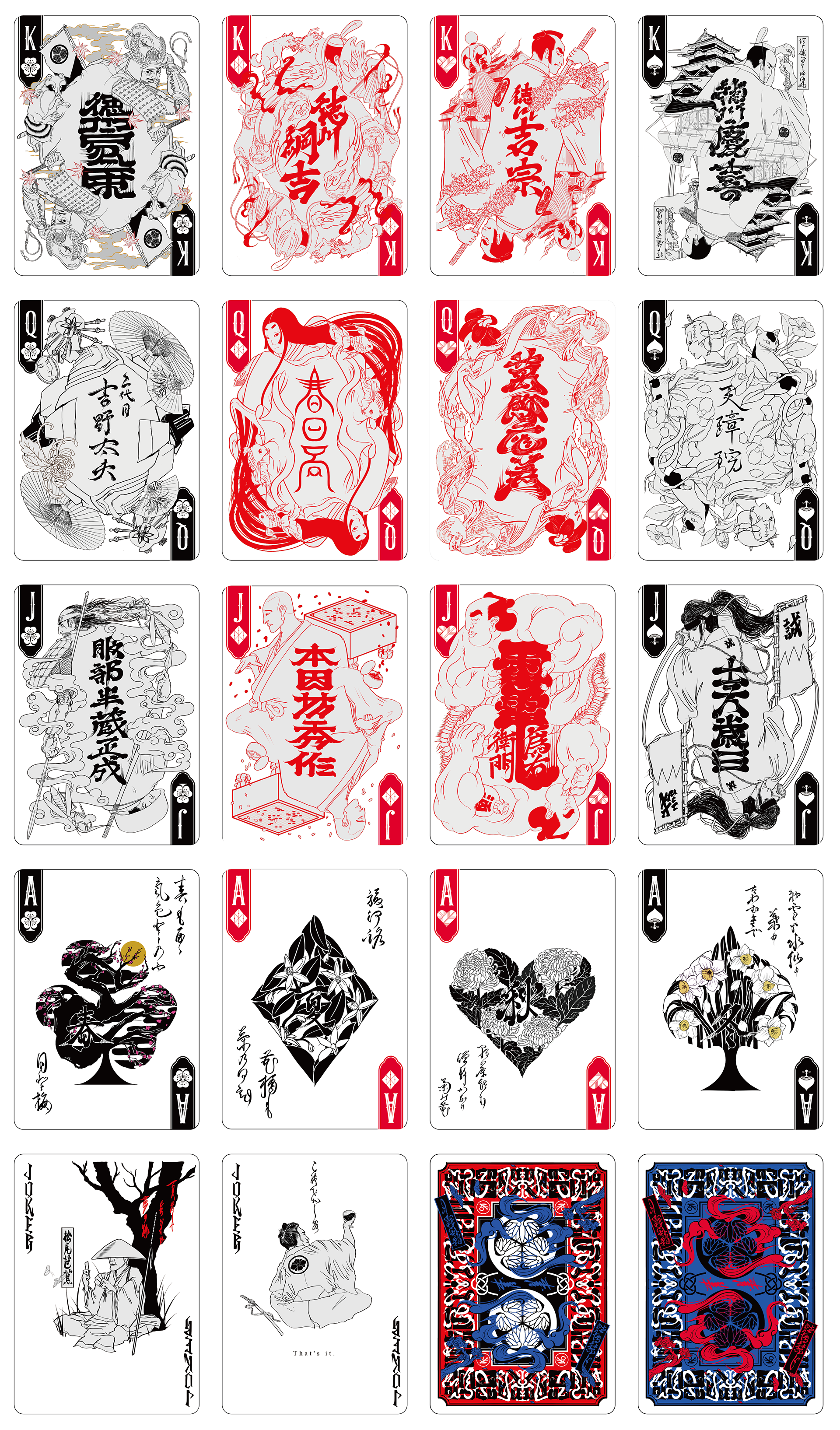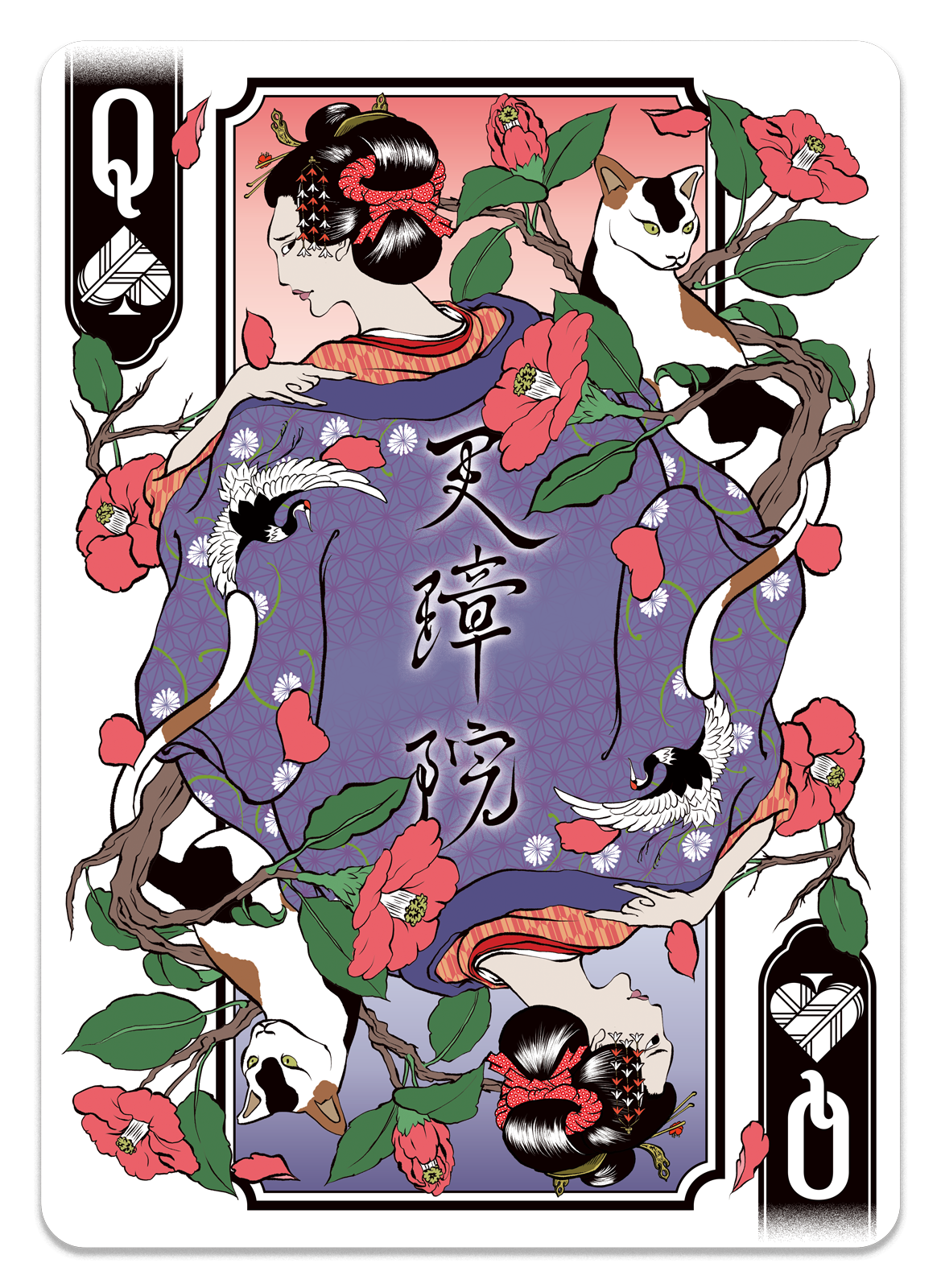 In the early stages of conception, my thinking gravitated naturally toward lettering art — the discipline that forms the very core of my practice. As I explored the history of playing cards and the symbolic weight embedded within each suit, I began to find organic points of convergence with the cultural soil of Japan. This recognition crystallised into the first concept: elevating lettering into the visual language of tattooing, adorning historical figures with its intricate forms. Through the process of making, however, the concept underwent an organic transformation — ultimately arriving at the form it takes today.
