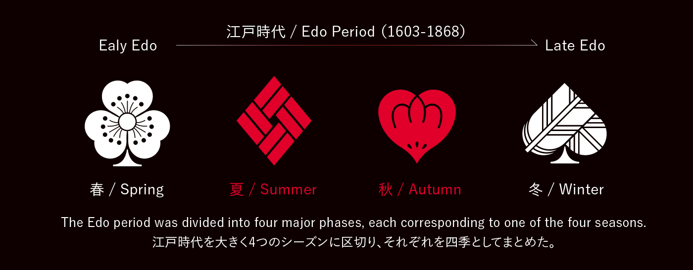 The Edo period of Japan became the thematic foundation of Edo Karuta — though perhaps it would be more accurate to say it chose us rather than the other way around. The Edo period can be considered the golden age of pre-industrial Japan. The peace established by the Tokugawa Shogunate through the unification of the country enabled unprecedented economic growth alongside a flourishing of the arts and cultural life. Yet this same era was defined by an isolationist outlook and the entrenchment of rigid social hierarchies — conditions that some historians point to as a factor in slowing Japan's path toward industrialization. The period ultimately came to an end with the arrival of foreign powers that the Tokugawa regime could not resist, triggering a rapid drive toward modernization.