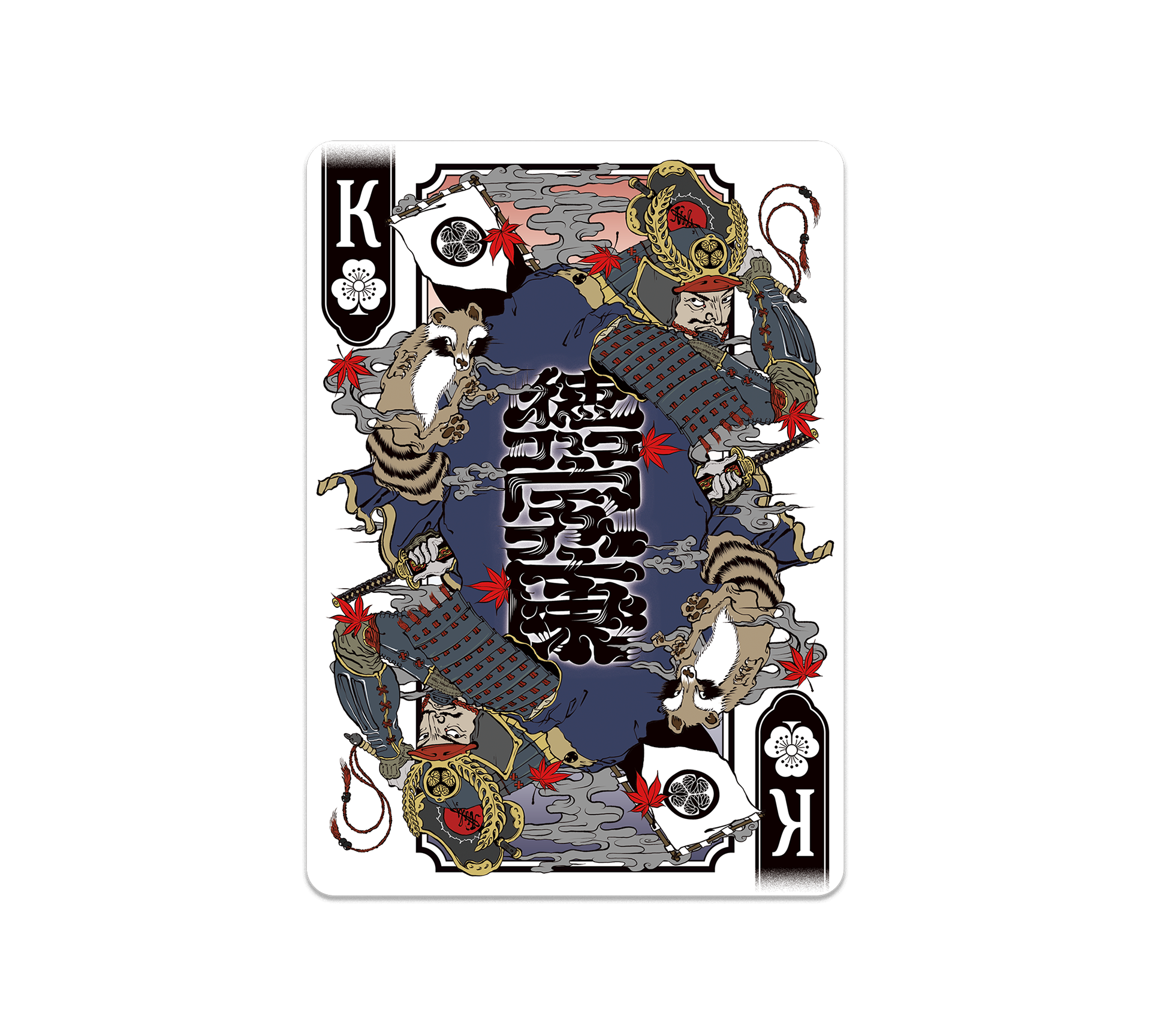 One of the three great unifiers of Japan alongside Oda Nobunaga and Toyotomi Hideyoshi, Ieyasu founded the Tokugawa Shogunate and consolidated the foundations of a unified realm — ushering in over two centuries of peace that defined the Edo period. Nicknamed "the Tanuki" for his cunning and strategic patience, that shrewd intelligence is etched into his expression. The maple leaves adorning the design pay homage to the autumn foliage for which Nikkō Tōshō-gū, the shrine dedicated to Ieyasu, is celebrated.