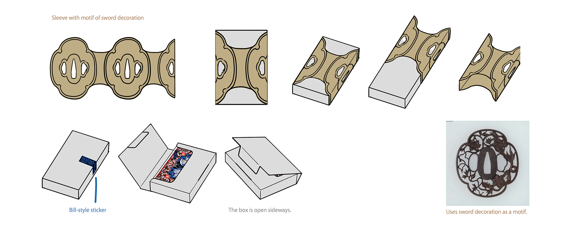 タックケースには様々な意味を込めたグラフィックが施されています。内側に描かれたグラフィックは、今回は残念ながら最終仕様には採用されませんでした。