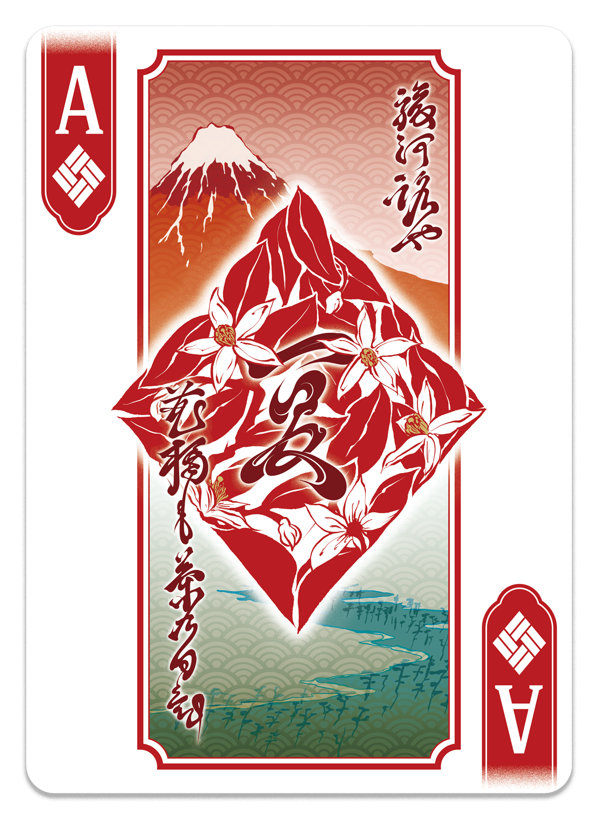 Each Ace is accompanied by a seasonal poem and floral motif. Every verse is drawn from the work of Matsuo Bashō — the JOKER of this deck. The world contained within these cards is woven entirely from the landscapes he witnessed and the truths he sought to convey.